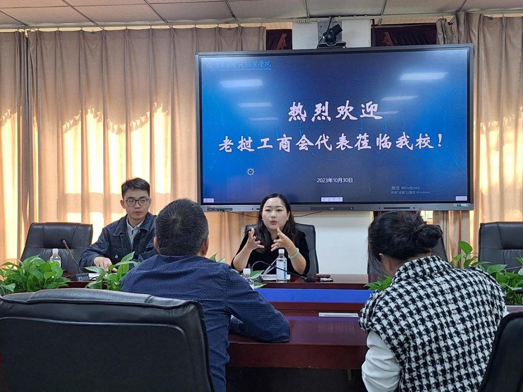 为推动职业教育国际化高质量发展,10月30日下午,老挝国家工商会重庆代表处总代表费翠女士与澜湄教培联盟秘书长杨千一先生一行2人到学校就国际化建设进行交流。国际合作与交流处处长王永斌与副处长李苗接待来访客人。