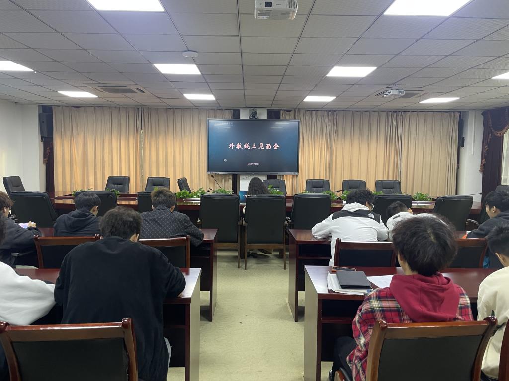 11月6日下午,国际班学生在学校明德楼二楼会议室与外教朴正一老师以线上视频的方式进行了一场别开生面的见面会。会议由国际合作与交流处副处长李苗主持。