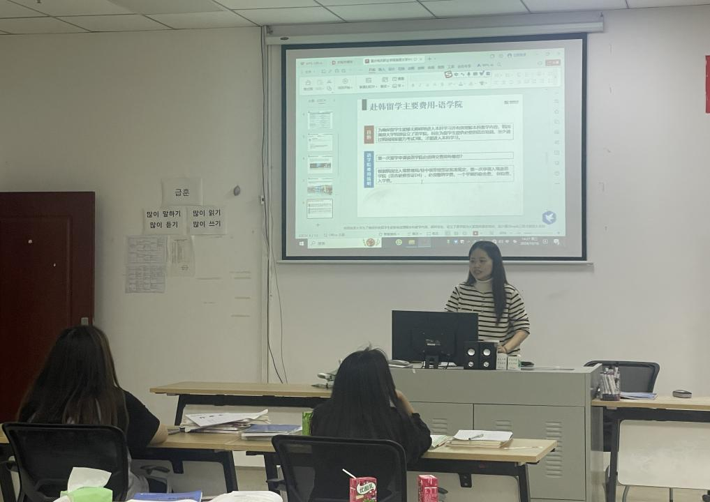 2024年10月16日,重庆电讯职业学院国际合作处面向2022级中韩国际班学生,举办了赴韩留学宣讲会。