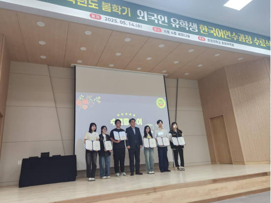 2025年5月14日,我校22级赴韩学生代表林夏同学凭借优异的成绩,顺利通过韩国湖原大学语学院结业考试,成功获得语学院结业证书,为后续专业学习奠定了坚实的语言基础。