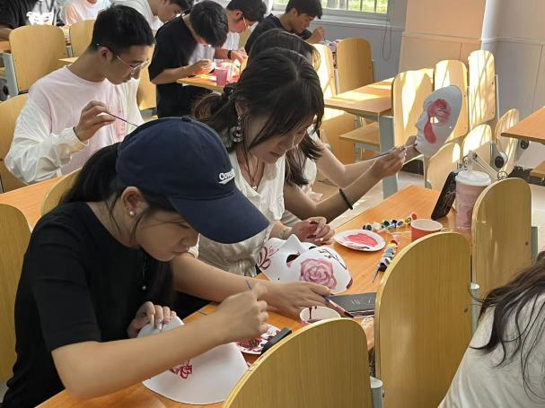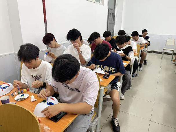 理论知识的铺垫之后,便进入了最令人兴奋的动手实践环节。每位同学都领取了一个纯白的安东面具胚和一套五彩斑斓的颜料。在外教的指导下,大家纷纷化身“艺术匠人”,充分发挥自己的想象力与创造力,用画笔为面具注入独特的生命与个性。有的同学遵循传统配色,力求复原古典韵味;有的则大胆创新,融入了现代审美元素,创作出独一无二的“跨界”作品。活动现场气氛热烈,欢声笑语不断,充满了艺术的氛围。