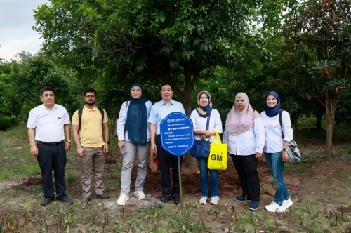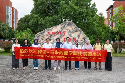 上午10点,交流活动正式拉开帷幕。在学校文化石前,德国-马来西亚学院代表团与我校领导共同合影,定格两校交流的重要瞬间。随后,双方移步至国际林,携手挥锹铲土,共同种下象征两校友谊的树木。