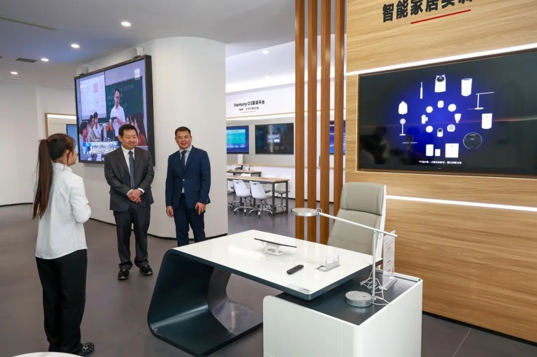 随后,在国际处工作人员陪同下,代表团开启校园参观,先后走访华为开发者创新中心、通信实训室、数媒实训室及华为智能网联汽车实训中心,详细了解我校在通信技术、数字媒体及汽车工程领域的实训建设情况。代表团对我校先进的实训设施与特色教学模式给予高度评价。